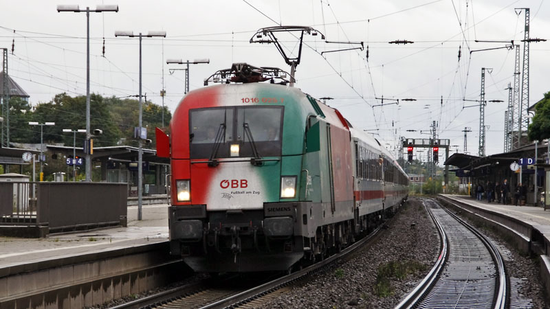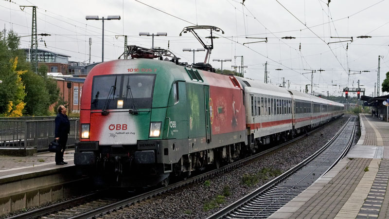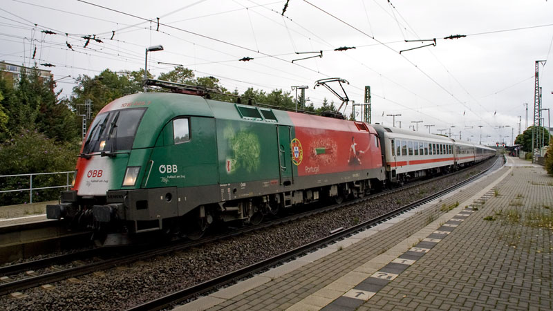 "Türke" unter den ÖBB EM-Werbeloks vor dem IC 2082