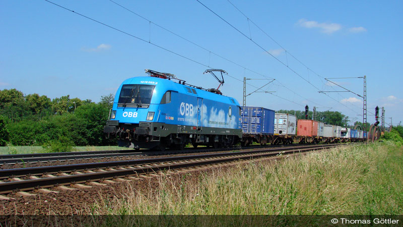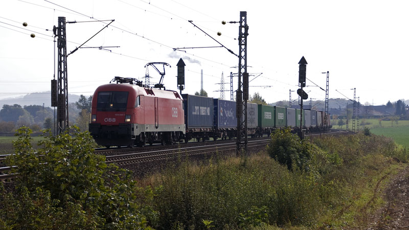 1016 026-5 der ÖBB mit ihrem Containerzug. Godenau, 18. Oktober 2008 |