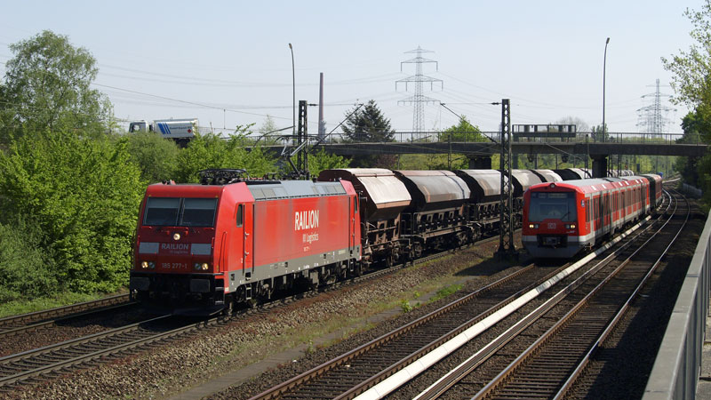 Wettrennen mit der S3 nach Neugraben gab es auch… die 185 277-1 brachte
