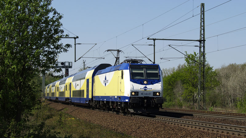 ehemalige Niedersachsenlok, ME 146-01 donnerte mit ihrem metronom von Hamburg