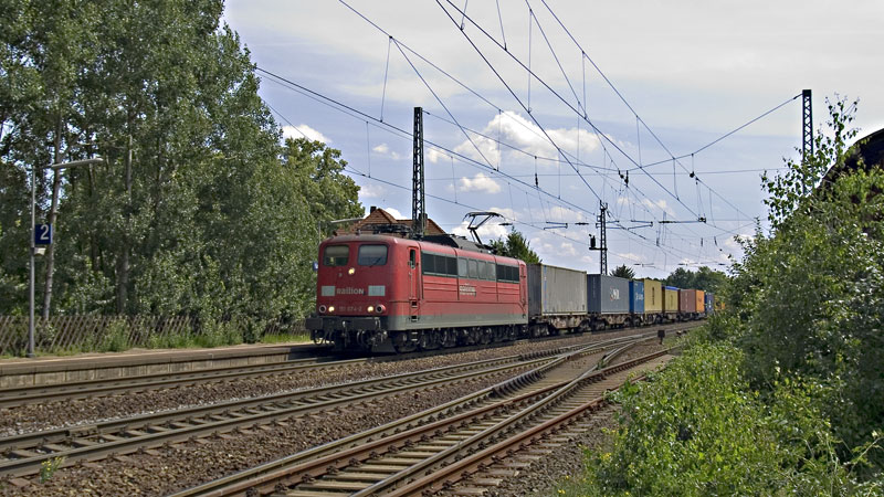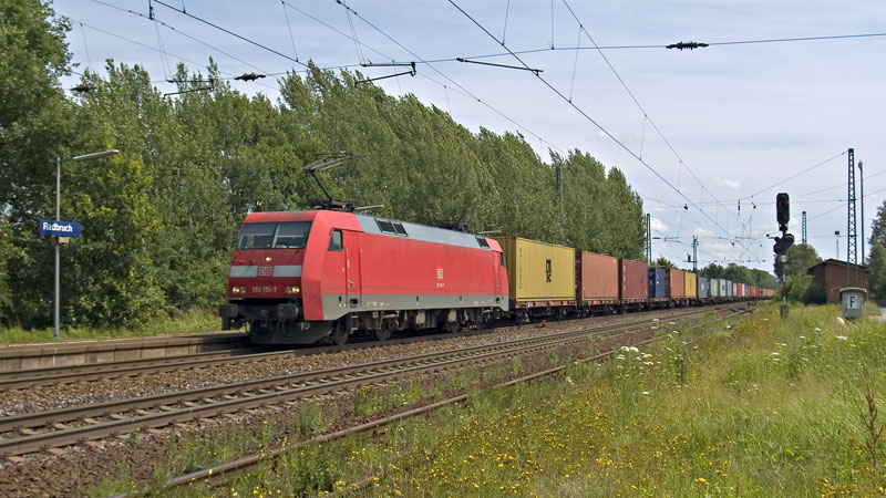 einem ellenlangen Containerzug durchrollte die 152 151-7 den Bahnhof Radbruch.