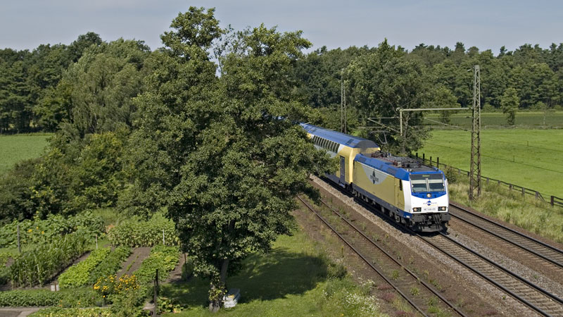 einem "Norfolk Line"-Zug gen Skandinavien durch den Bahnhof Radbruch. 14. Juli 2007 |