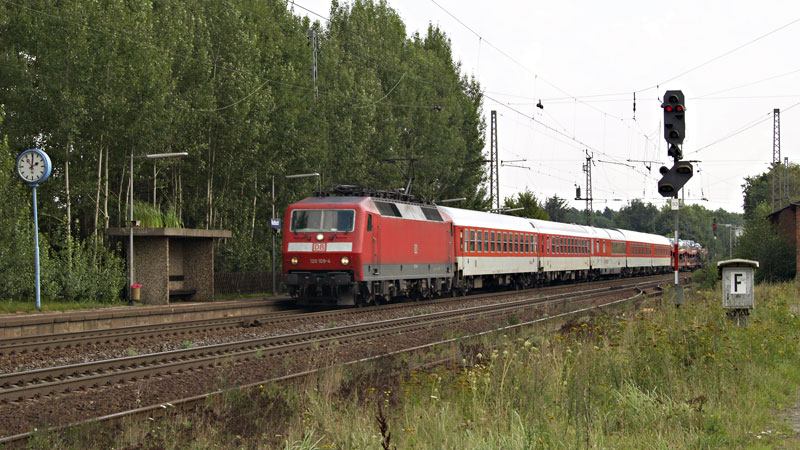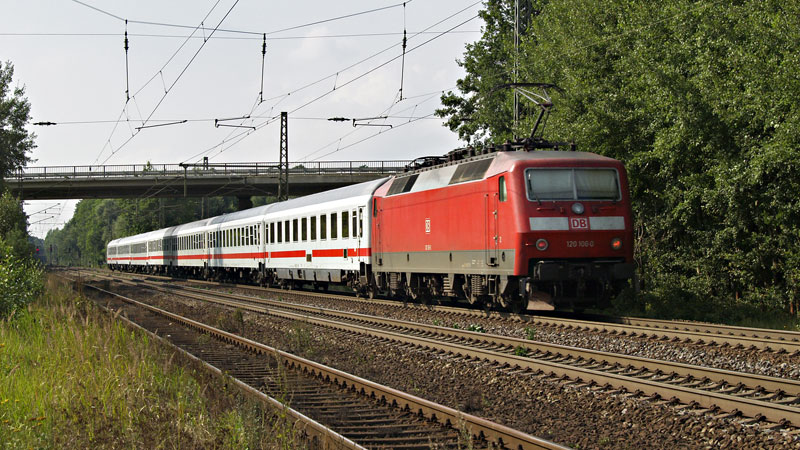 später flitzte dieser IC mit der 120 106-0 am Zugende in Richtung Hamburg.