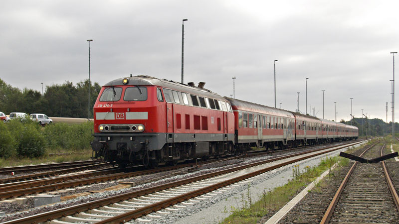 fahren die 218er… hier fuhr der RE aus Hamburg mit der 218 474-5 ein.