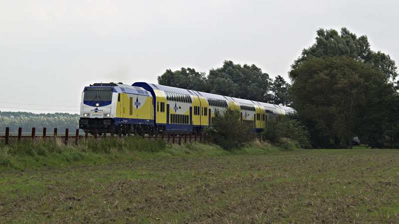 fährt der RegionalExpress der DB… Bei Altenbruch, 25. August 2007 |
