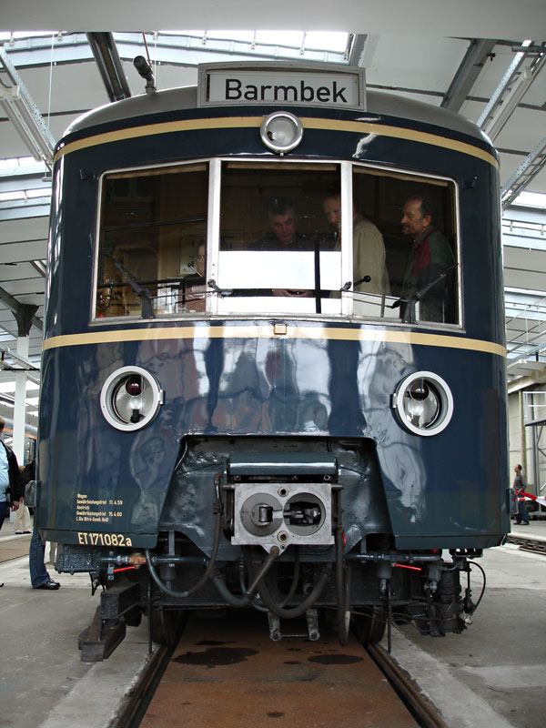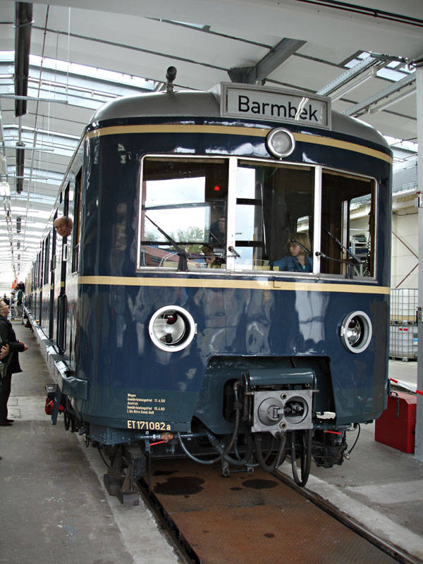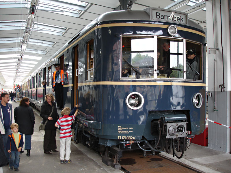 | Der betriebsfähige Star der historischen S-Bahn Hamburg! ET/EB 171 082 bestens aufgearbeitet im Stil der 50er Jahre. GSB Hamburg Ohlsdorf, 2. September 2007 | ||