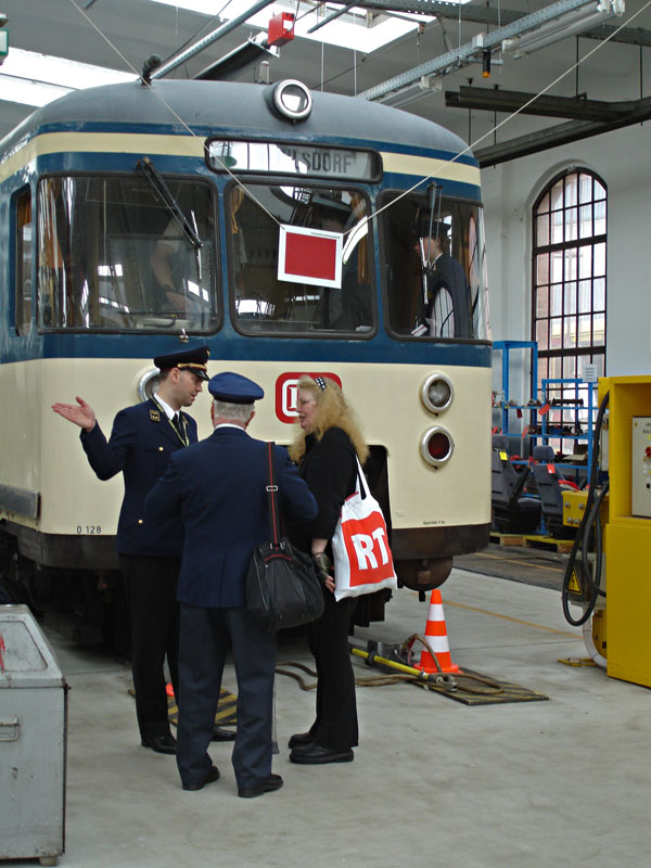 Berliner Gast neben dem historischen Triebzug der "Hamburg Altonaer