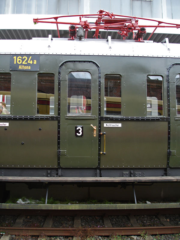 | Ein Wechselstromer! Zwischen 1907 und 1955 fuhren die Wechselstromzüge zwischen Poppenbüttel und Blankenese über die Verbindungsbahn. GSB Hamburg Ohlsdorf, 2. September 2007 | ||