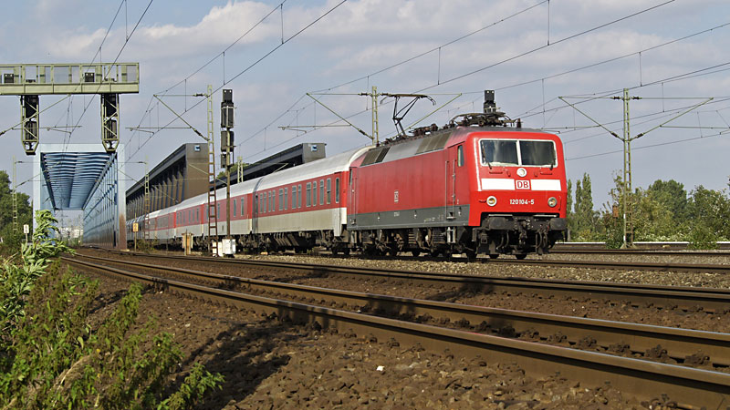 einem "Ersatz-ICE" polterte die 120 135-9 an uns vorbei –