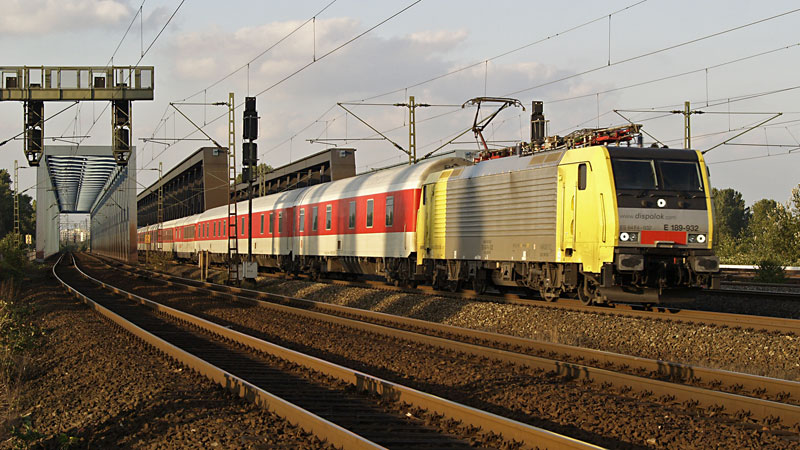 Autozug 13383 nach Verona mit der E 189 932. Hamburg Süderelbbrücken, 16. September 2007 |
