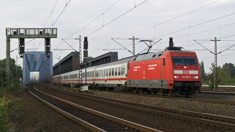 weiterer InterCity, bespannt mit der 101 069-3. Hamburg Süderelbbrücken, 19. September 2007 |
