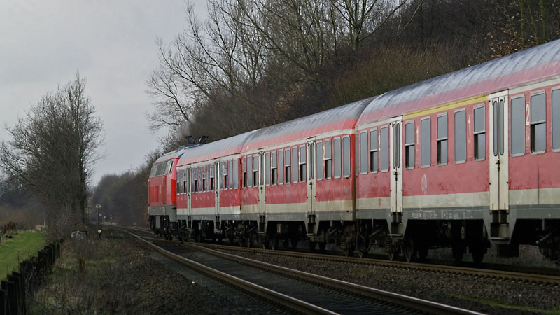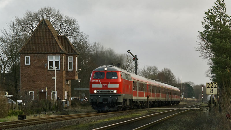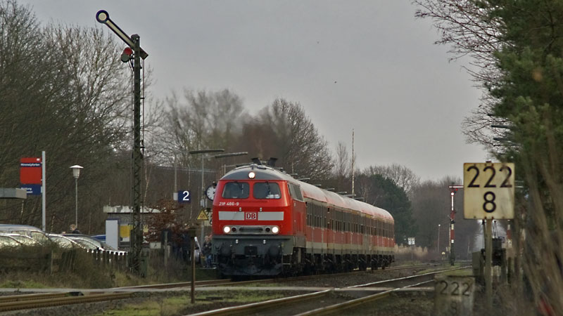 BÜ-Szenerie ist nun auch Geschichte – 218 210-3 mit RE nach HH fuhr in