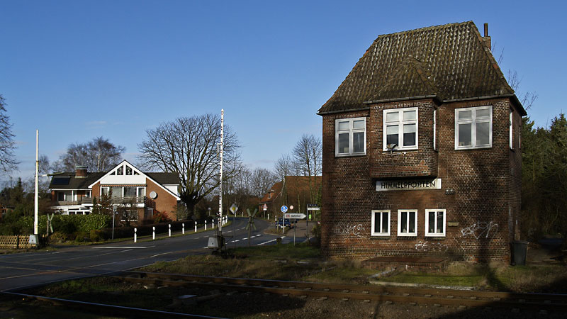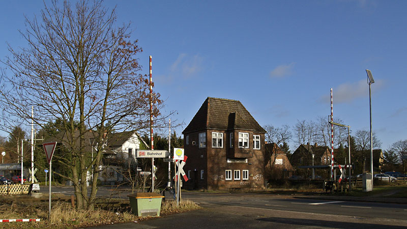 Fahrdienstleiterstellwerk am westlichen Bahnhofskopf. Himmelpforten, 8. Dezember 2007 |