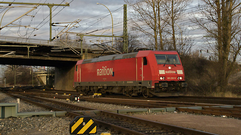 185 230-0 mit Karacho an mir vorbei. Hamburg Waltershof Süd, 13. Januar 2008 |