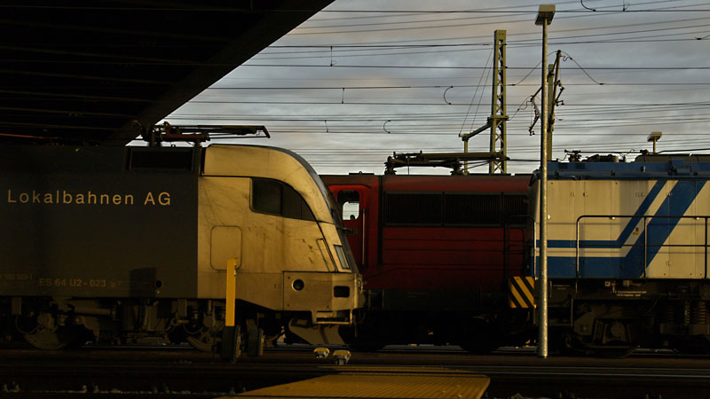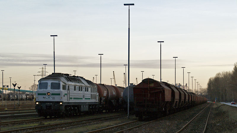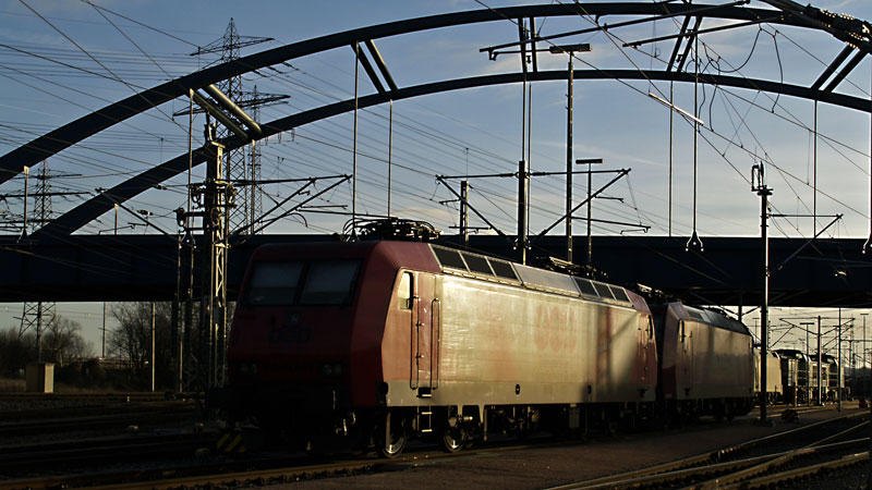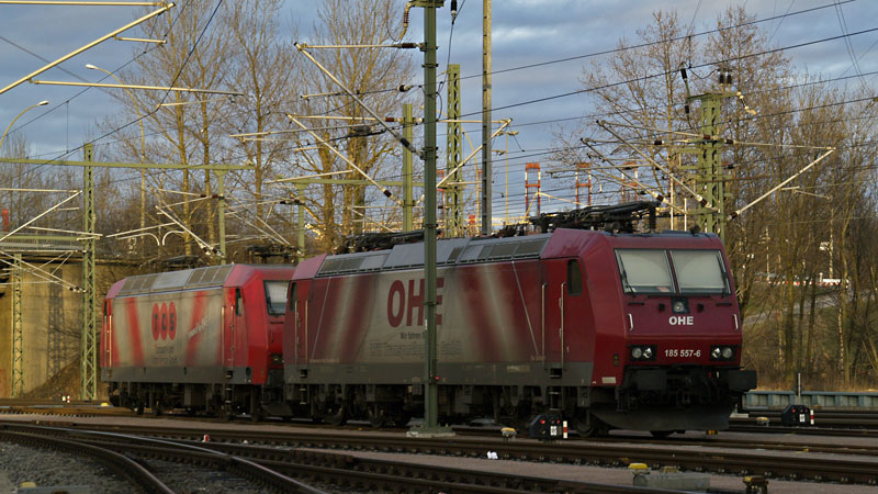 beiden TRAXX der OHE-Gruppe sonnten sich in der Abendsonne. Hamburg Waltershof Süd, 13. Januar 2008 |