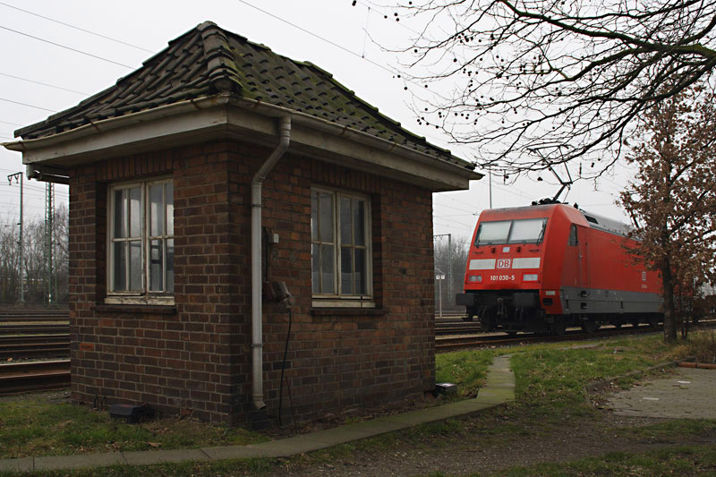 101 030-5 vor dem alten Wägehäuschen der alten Gleiswaage. Hamburg Eidelstedt, 21. Februar 2008 |