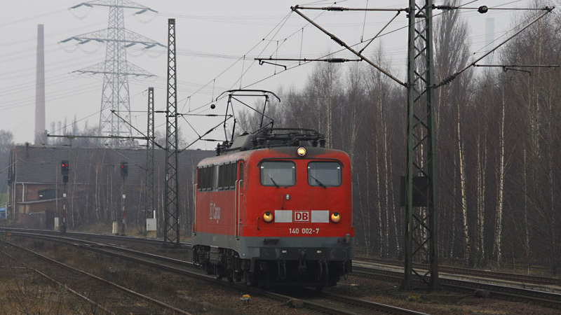 Einheitsellok 140 368-2 auf dem Weg nach Maschen. Hamburg Unterelbe, 21. Februar 2008 |