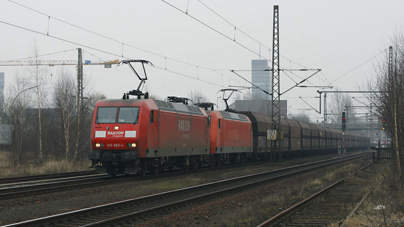 einem Kohlenleerpark rollten die 145 063-4 und 145 037-8 gen Hamburg
