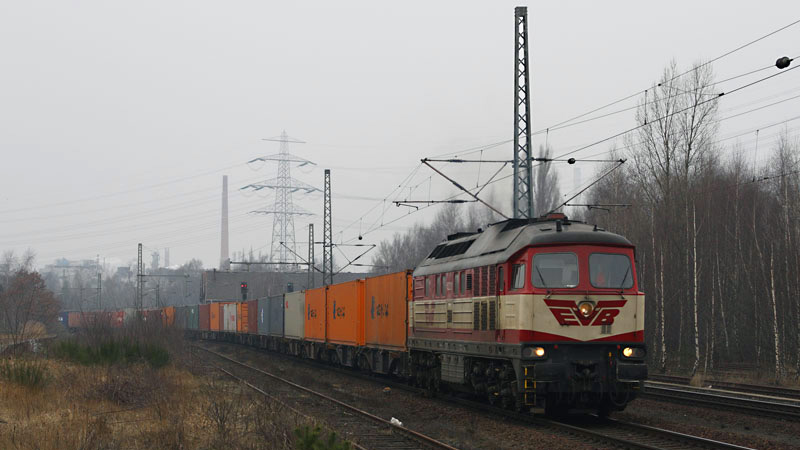 Containerzug nach Bremerhaven zog die EVB 622 01. Hamburg Unterelbe, 21. Februar 2008 |