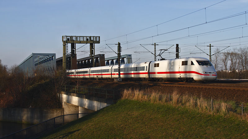 InterCity-Express hatte noch seine lange Reise vor sich – Triebzug 008. Hamburg Süderelbbrücken, 23. März 2008 |
