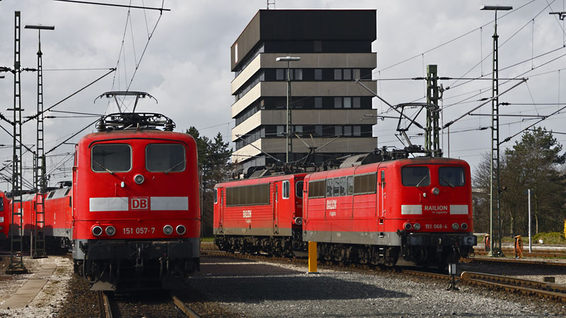 waren die Maschinen 151 057-7 und 151 068-4. Rangierbahnhof Maschen, 29. März 2008 |