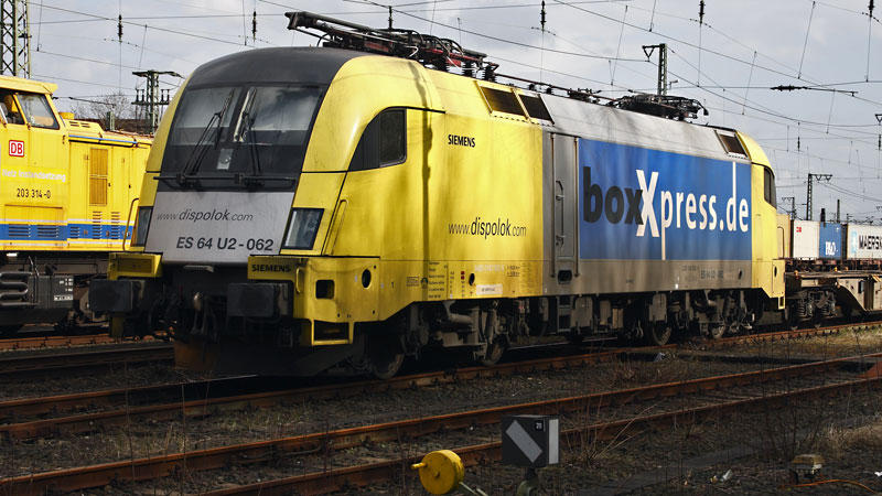 ES 64 U2-062 von boxXpress.de bei der Wochenendruhe. Güterbahnhof Hamburg Harburg, 29. März 2008 |