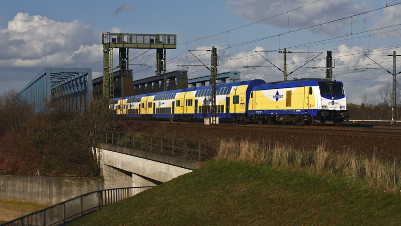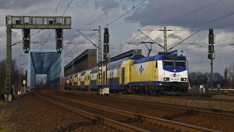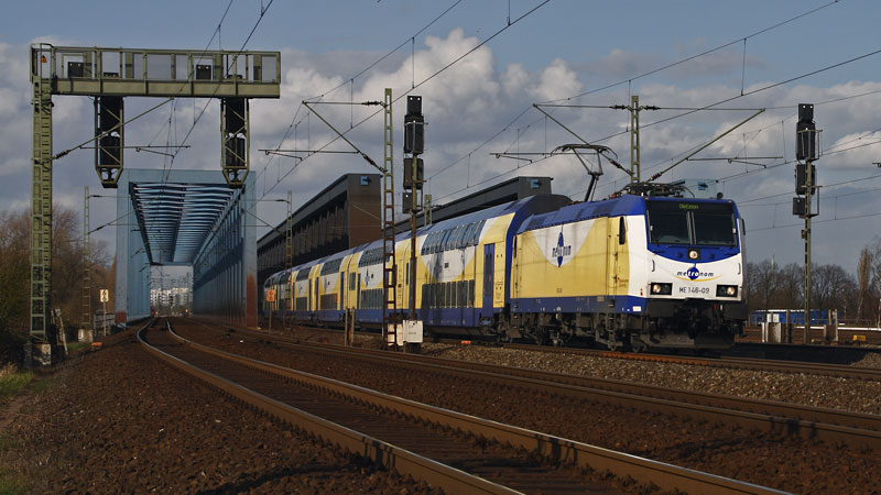 nach Bremen mit der ME 146-03. Hamburg Süderelbbrücken, 29. März 2008 |