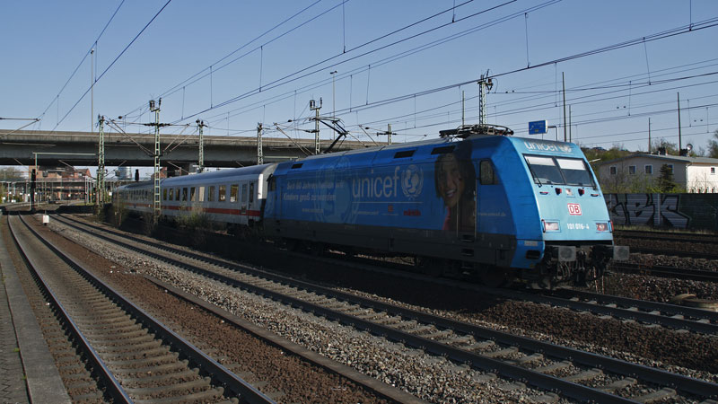 | Ohne Lokvorschau isses halt eine Überraschung, so war die "Unicef" 101 016-4 mit einem IC gen Bremen unterwegs zu sehen. Hamburg Harburg, 22. April 2008 | ||