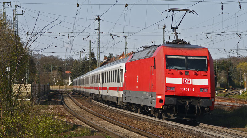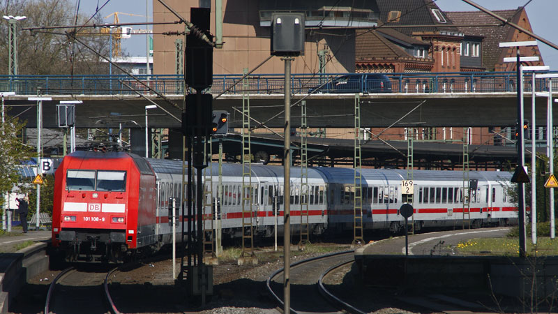 101 018-0 mit ihrem südwärts fahrenden InterCity. Lüneburg, 22. April 2008 |