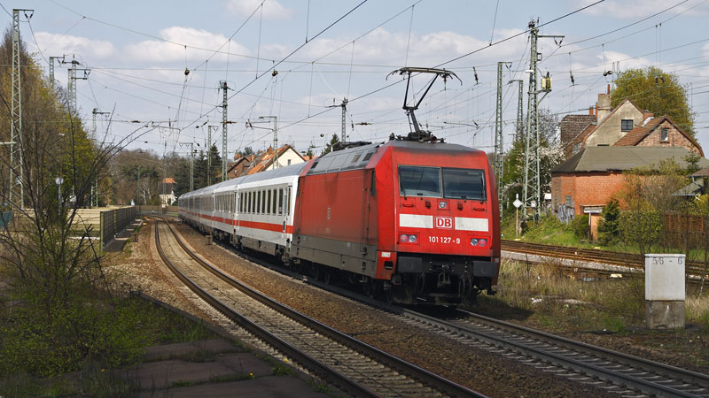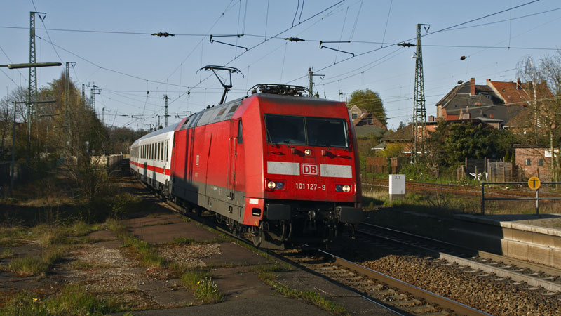 südwärts fahrende IC wurde von der 101 127-9 gefahren. Lüneburg, 22. April 2008 |