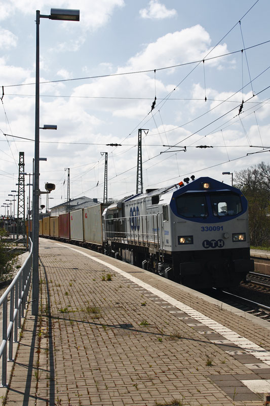 | Die dicksten Dinger kommen natürlich immer aus der falschen Richtung – so auch dieser "Blue Tiger" der LTH, die 330 091. Lüneburg, 22. April 2008 | ||