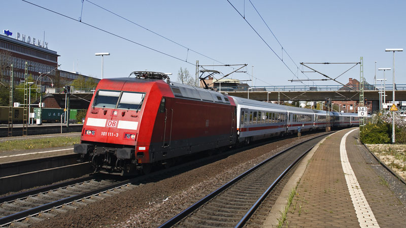 101 111-3 fuhr mit ihrem InterCity ins Rheinland aus. Hamburg Harburg, 23. April 2008 |