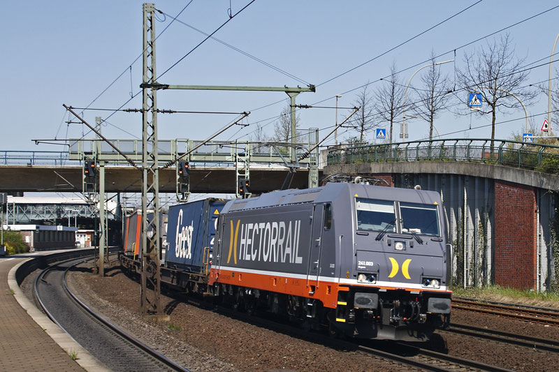 | Hier sehen wir zum ersten Mal die "Organa" von HECTORRAIL – die 241.003 mit dem Van Dieren-Zug nach Wanne-Eickel! Hamburg Harburg, 23. April 2008 | ||