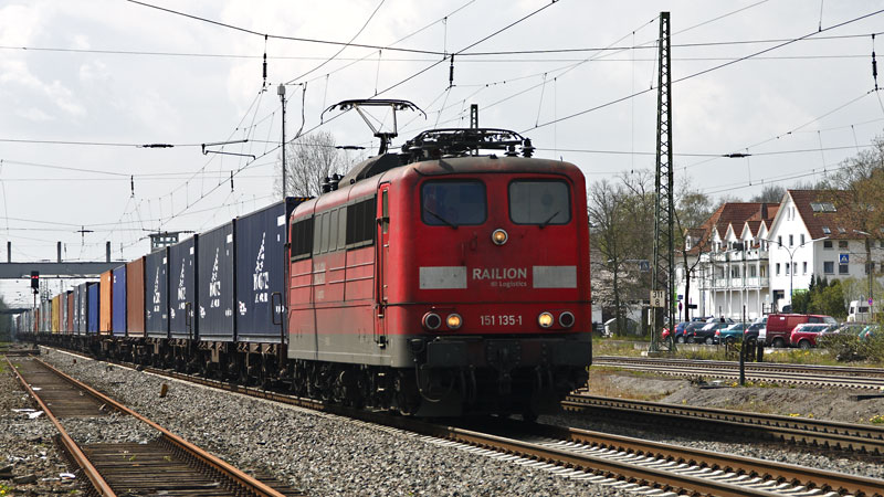 etlichen Stahlkisten war die 151 135-1 auf dem Weg nach Hamburg. |