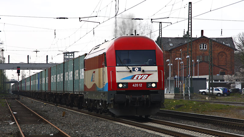 Blockabstand folgte die 420 12 der EVB auch mit einem Containerzug nach
