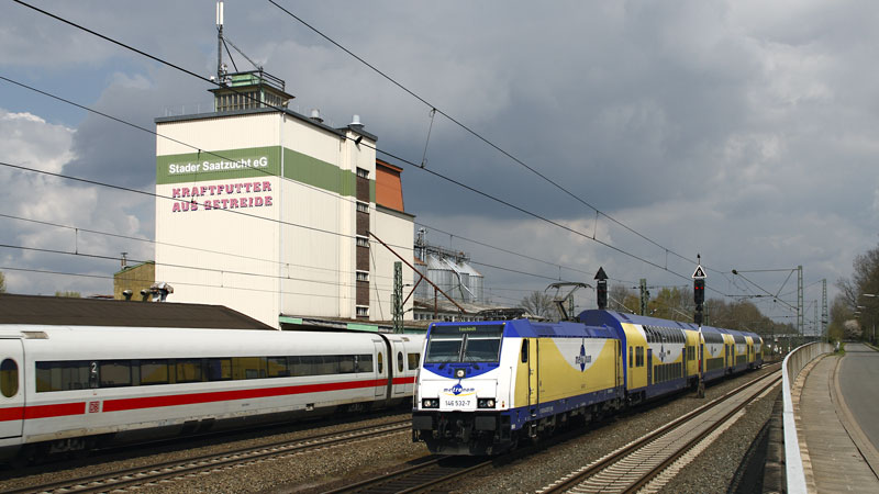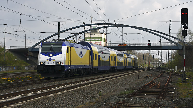 MEr nach Tostedt mit der 146 532-7 bei der Einfahrt ins Zielbahnhof. Tostedt, 25. April 2008 |