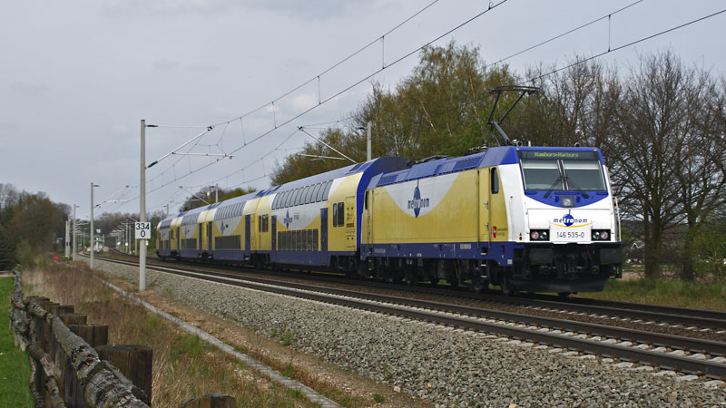 MEr nach Hamburg Harburg mit der 146 535-0. Hittfeld, 27. April 2008 |