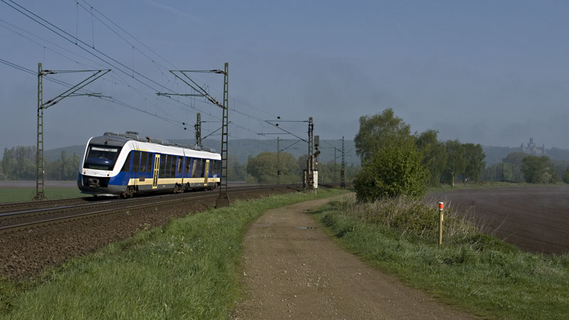 Löhne (Westfalen) fuhr diese EuroBahn (VT 4.04). Burgstemmen, 3. Mai 2008 |