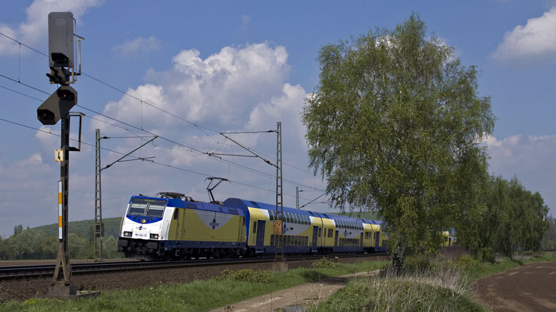 ME 146-14 mit einem weiteren metronom nach Göttingen. Burgstemmen, 3. Mai 2008 |