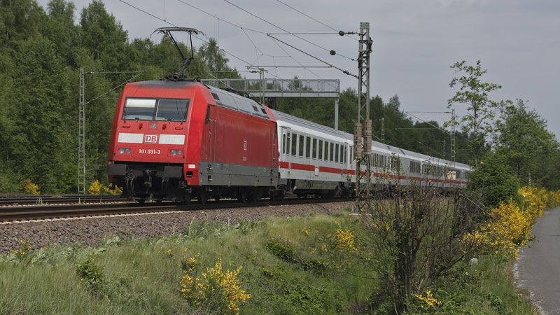 Tempo 200 ging's nach Hamburg – die 101 031-3 sorgte dafür. Bei Lauenbrück, 14. Mai 2008 |
