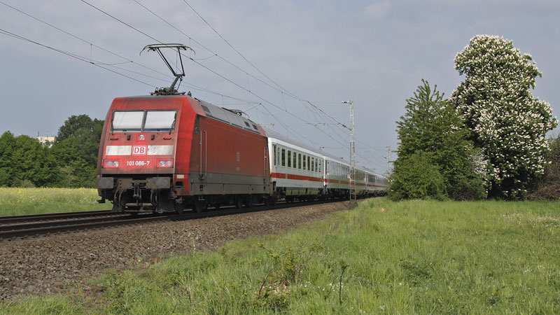 101 133-7 schob eilend ihren IC nach Hamburg. Scheeßel, 14. Mai 2008 |