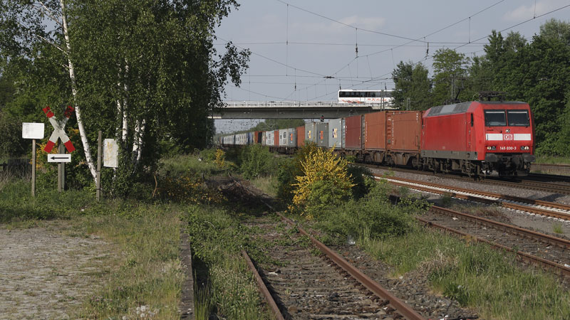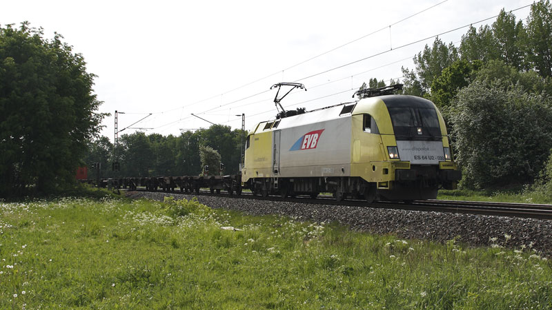 fühlte sich verfolgt von der EVB… die ES 64 U2-038 mit noch mehr Containern