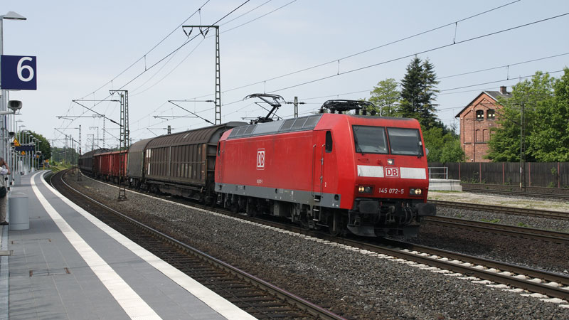 Karacho donnerte die 145 072-5 mit ihrem Gemischtwarenladen in Richtung