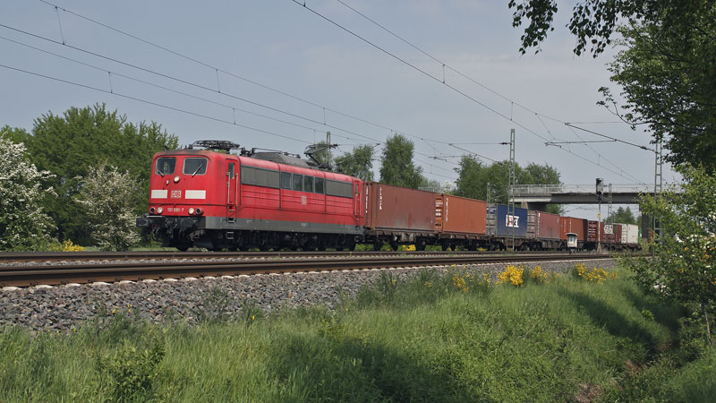 einem Containerzug rollte die 151 081-7 in Richtung Sagehorn. Bei Scheeßel, 14. Mai 2008 |