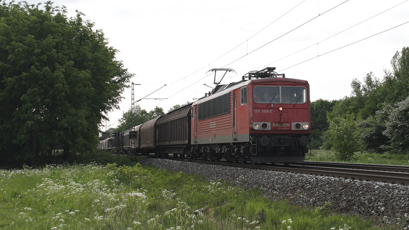 wurden mit der 155 221-5 in Richtung Westen abgefahren. Bei Lauenbrück, 14. Mai 2008 |