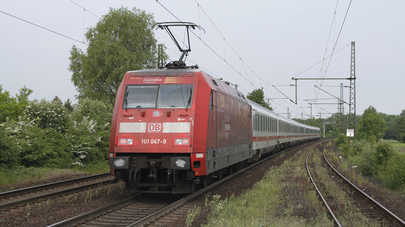 Feuerwehr… Werbelok 101 047-9 schob ihren IC nach Hamburg. Ashausen, 16. Mai 2008 |