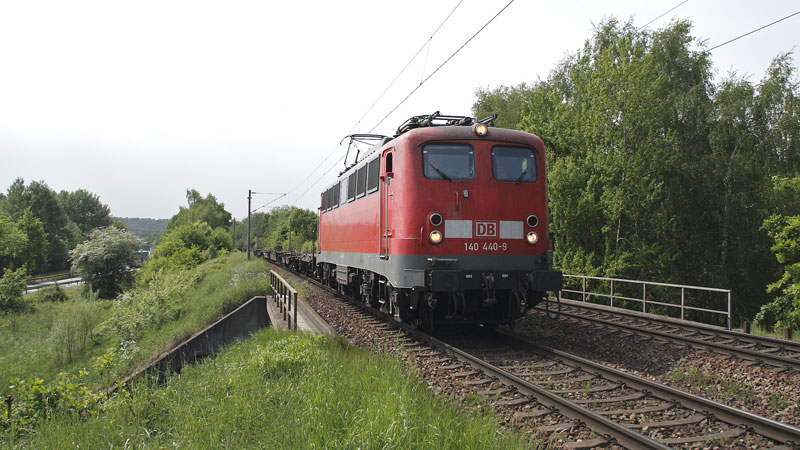 140 440-9 brachte zig Containertragwagen in den Hafen – zig Boxen warteten