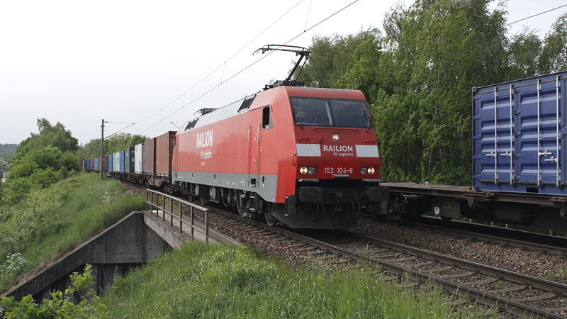 die 152 104-6 brachte Stahlkisten herein. Hamburg Moorburg, 16. Mai 2008 |