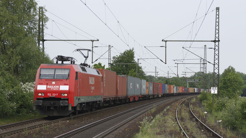 152 113-7 brachte noch mehr Container in den Süden. Ashausen, 16. Mai 2008 |