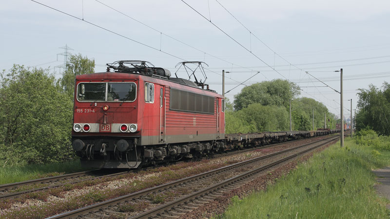 die älteste noch für Railion fahrende 155 war hier aktiv – die 155 004-5! Hamburg Moorburg, 16. Mai 2008 |